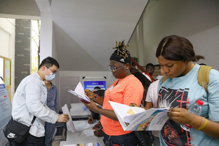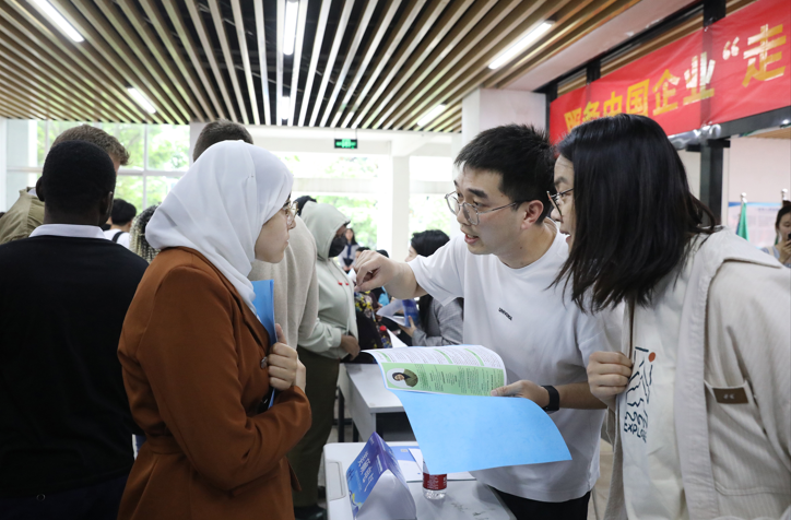 In the recruitment booths, international students and potential employers chatted with each other. Students filled out application forms, and company staff introduced their companies, job positions, salary and benefits, and career development. Students from lower grades also joined the event to prepare for their future job-seeking after graduation.