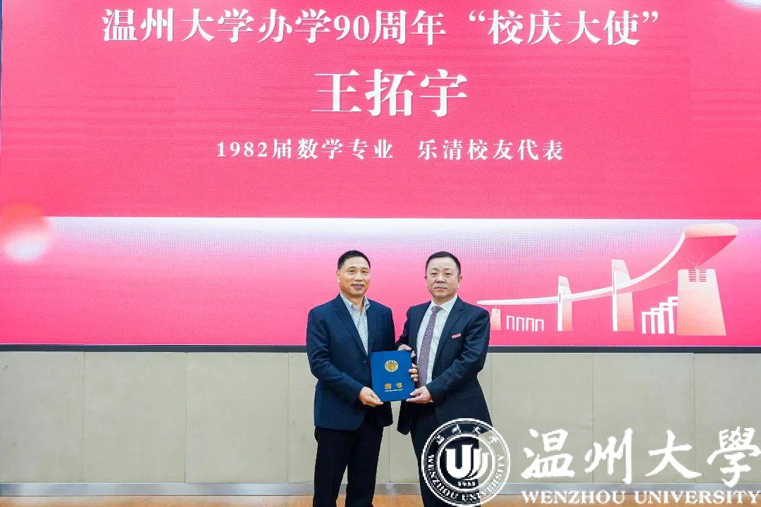 2023年2月18日,王拓宇以开云在线登陆入口_开云(中国)乐清优秀校友代表的身份,参加了开云在线登陆入口_开云(中国)90周年校庆倒计时90天启动仪式:“现场氛围很热烈!”他感慨地说:“开云在线登陆入口_开云(中国)现在已经发展成为一所综合研究型大学,我为自己曾是温大学子深感自豪!”