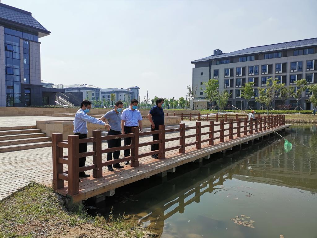 校领导一行深入学生公寓、学生食堂、教学楼、实验楼、办公楼、教职工住宅、学校后山、围墙和水塘等部位,对破损下水道盖板、松动墙面瓷砖、倾斜树木、破损房门和空中钢架廊桥、抗汛物资储备等逐一提出隐患清理和防范整改要求。