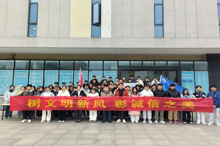 在支部党员和社团联合会工作人员的组织下,同学们纷纷在活动横幅上进行签名,并表示,将用自己的言行带动和影响身边的人,树牢诚信观念,争当文明学生,共同为构建文明美丽和谐校园贡献自己的一份力量。孔子曰“不学礼,无以立”。礼仪的核心是要人们遵循“律己、敬人、秩序”的行为规范,它蕴含着诚信、和谐与秩序的价值观念,是师生应当具有的基本素质。学院将继续丰富“诚信·文明”主题教育的形式与内涵,提升学院学风建设质量,努力让诚信成为学院行事的准则根基,使文明成为学院风貌的鲜明标识,为推动学院高质量发展贡献力量。(特约通讯员:张俊 摄影:方汝佳 审核:耿广汉)