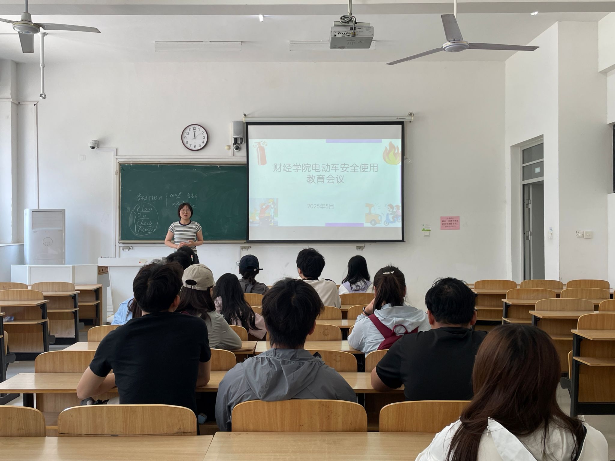5月30日,财经学院在致知楼C105召开电动车车主安全教育大会,学院辅导员王天云担任主讲人,学院三十余名电动车学生车主参会。
