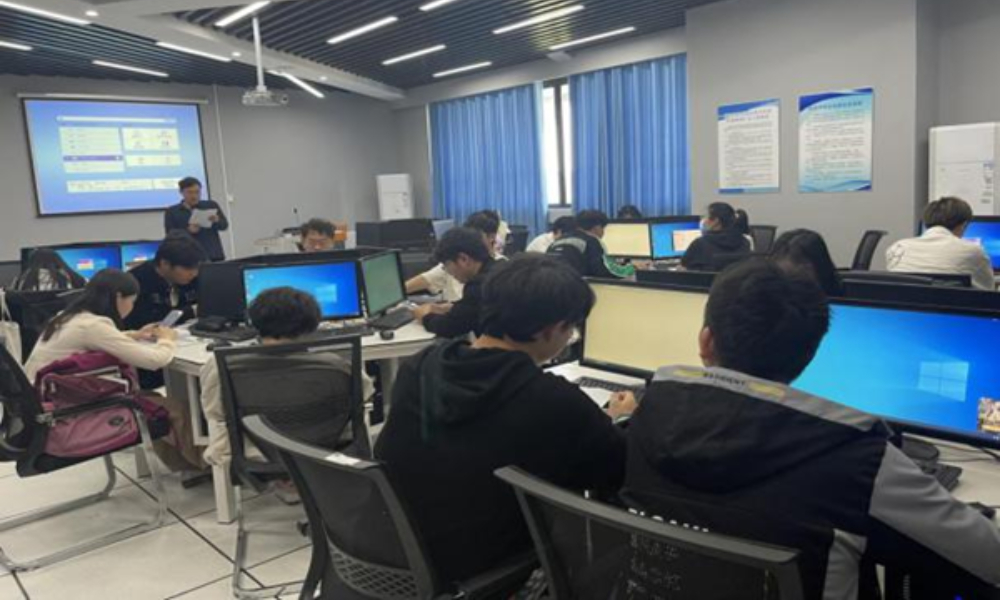 2022年4月金工系教工党支部在实验室指导学生参与学科A、B类赛事