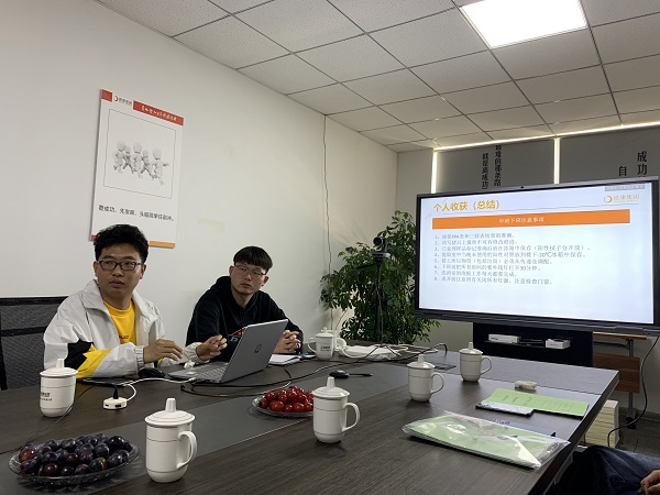 在企实习的2021届毕业生谭贤伟、姚留用、尹咪咪、晏紫薇、李春雨等12位学生分别从生物安全、生产实习内容、风采展示、见习总结、建议意见等几方面进行了详细的汇报。每位实习学生围绕此次实习分享交流了心得体会。大家一致认为,学生们热爱所学专业,实习过程中态度认真、踏实肯干、责任心强,并能独立思考、团结协作、总结经验,通过这次实习熟悉了生产流程和操作规程,完成了实习内容,达到了实习目的,明显提高了理论结合实践能力,表现出了优秀的综合素质和专业品质。
