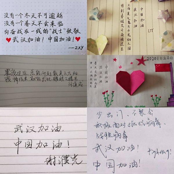 “中国加油,武汉加油”“没有一个冬天不可逾越,没有一个春天不会来临……”动物科学191班团支部采用了手写祝福的方式来对正在进行抗“疫”一线的工作人员以及武汉送去一份关爱。一句句祝福的话语,传达出团员青年们对抗击疫情的必胜信心。
