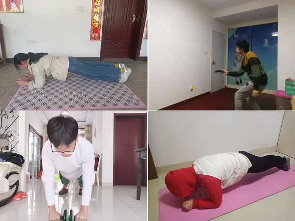 在家进行体育锻炼,不仅提高了学生的科学健身素养,也丰富学生特殊时期的文化生活,同时引导同学加强锻炼,提高免疫力,降低感染风险,团结一心打赢本次疫情防控阻击战。(特约通讯员:李焱 审核:李忠)