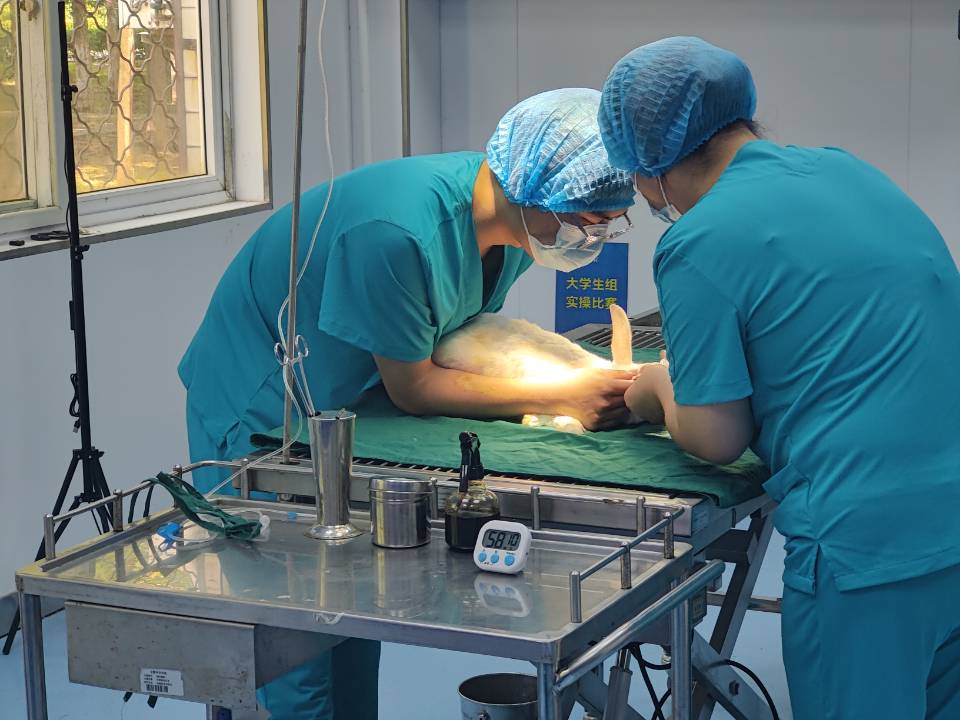 5月26日,第七届“雄鹰杯”小动物医师技能大赛在开云在线登陆入口_开云(中国)附属兽医院手术室完成理论和实验操作考核,其中理论考核采用线上专业考核系统,随机抽取试卷进行作答;实验操作考核包括兔胃切开术、血涂片制作和徒手打结。