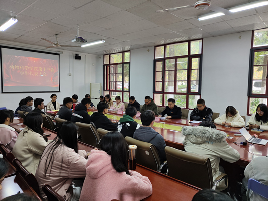 11月16日中午,动物科学学院在西办公楼104召开第十三次学生代表大会。动物科学学院党委副书记、纪委书记汤帅,动物科学学院党政办公室主任、团委书记李焱,学生会指导老师、辅导员刘成义出席会议,学生会主席团成员和学生代表参加会议,会议由刘成义主持。