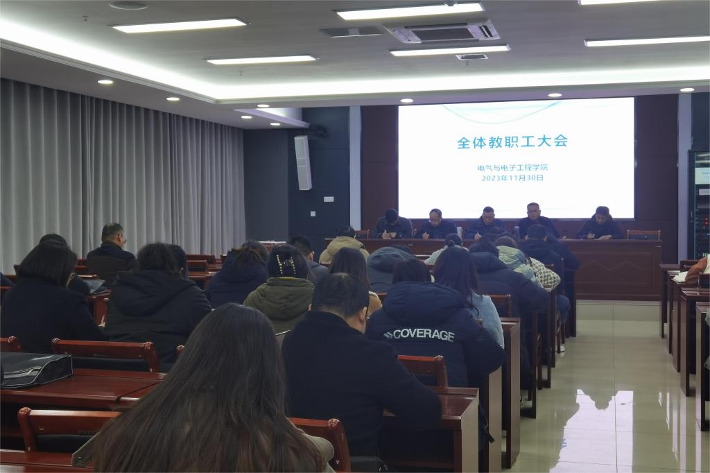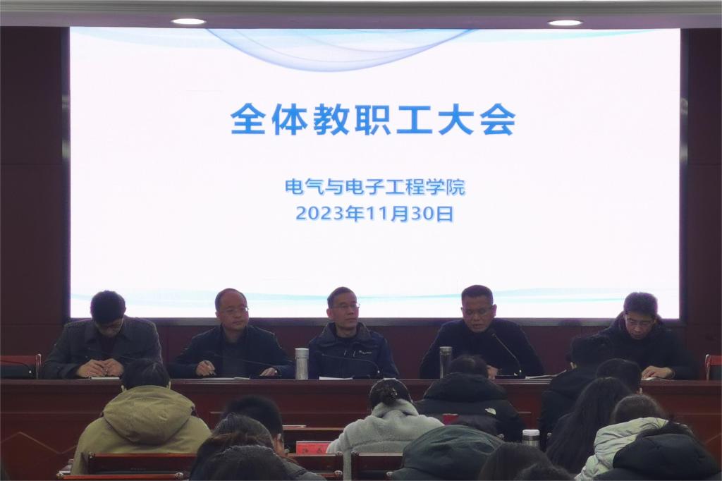11月30日下午,电气与电子工程学院于西辅楼111会议室召开全体教职工大会,学院党政领导及全体教职工参加了会议,会议由党委书记骆海邦主持。