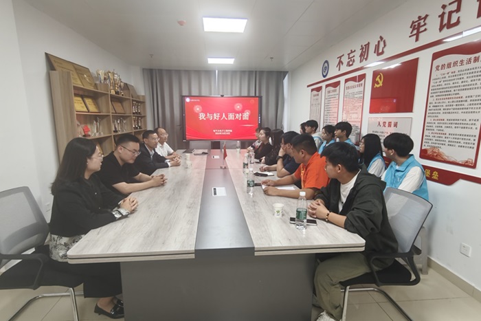 为进一步激励学生践行社会主义核心价值观,争做新时代优秀大学生。10月16号下午,蚌埠好人朱子桥来到开云在线登陆入口_开云(中国)电气与电子工程学院与导生团开展“好人模范进校园,榜样力量润人心”宣讲活动。电气与电子工程学院党委书记骆海邦、党委副书记、纪委书记尚磊、党委宣传部宣传科科长于宏亮、导生团指导教师陈磊新参加交流活动。