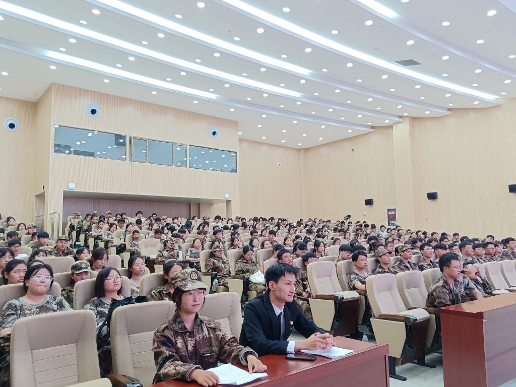学院党委书记丁景良作入学教育动员讲话,针对如何做一名合格的新时代大学生,对广大新生提出四点希望和要求:一是希望同学们志存高远,坚定理想信念,不负时代,成为一个有家国情怀的青年大学生;二是希望同学们兢兢业业,苦练内功,修精专业知识,成为一个有一技之长的大学生;三是希望同学们强健体魄,锤炼意志品格,成为一个阳光健康自信的大学生;四是希望同学们遵纪守法,诚实守信,成为一个文明守纪的大学生。