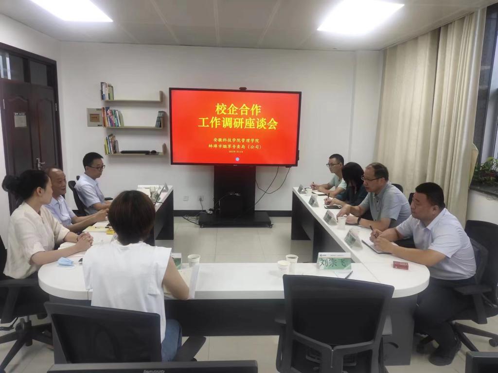 为进一步推进校企双方在人才培养、专业共建、科研合作等领域的交流与合作,7月14日下午,管理学院党委书记丁景良,副院长郑谦,信息与网络工程学院副院长曹浩,市场营销系主任刘宗飞和代犟博士等一行5人赴蚌埠市烟草专卖局(公司),进行校企合作项目洽谈,并就全方位深入合作进行了探讨与交流。此行受到蚌埠市烟草专卖局(公司)信息科主任周猛和企管科主任李生亮等人的热烈欢迎。