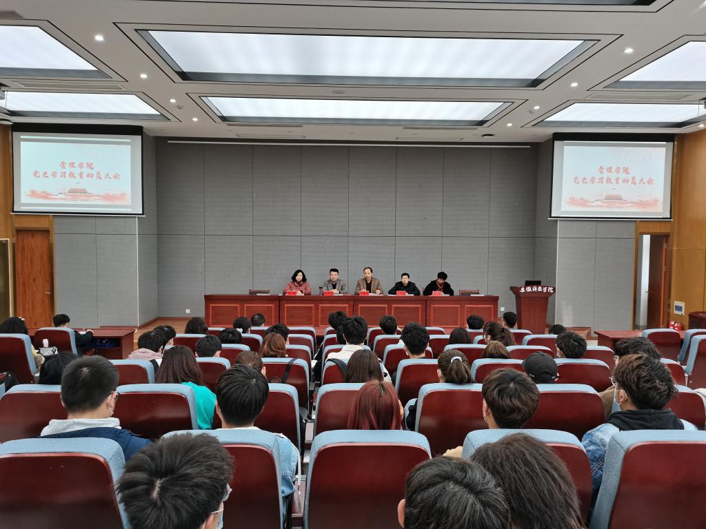 为深入学习贯彻落实习近平总书记关于学习党史的重要讲话和指示精神,引导广大师生党员围绕“学党史、悟思想、办实事、开新局”为主题开展党史学习教育,3月31日下午,管理学院于敏行楼B报告厅举办党史学习教育动员大会。管理学院党政班子、全体师生党员、入党积极分子及主要学生干部参加了会议,会议由院党委书记丁景良主持。