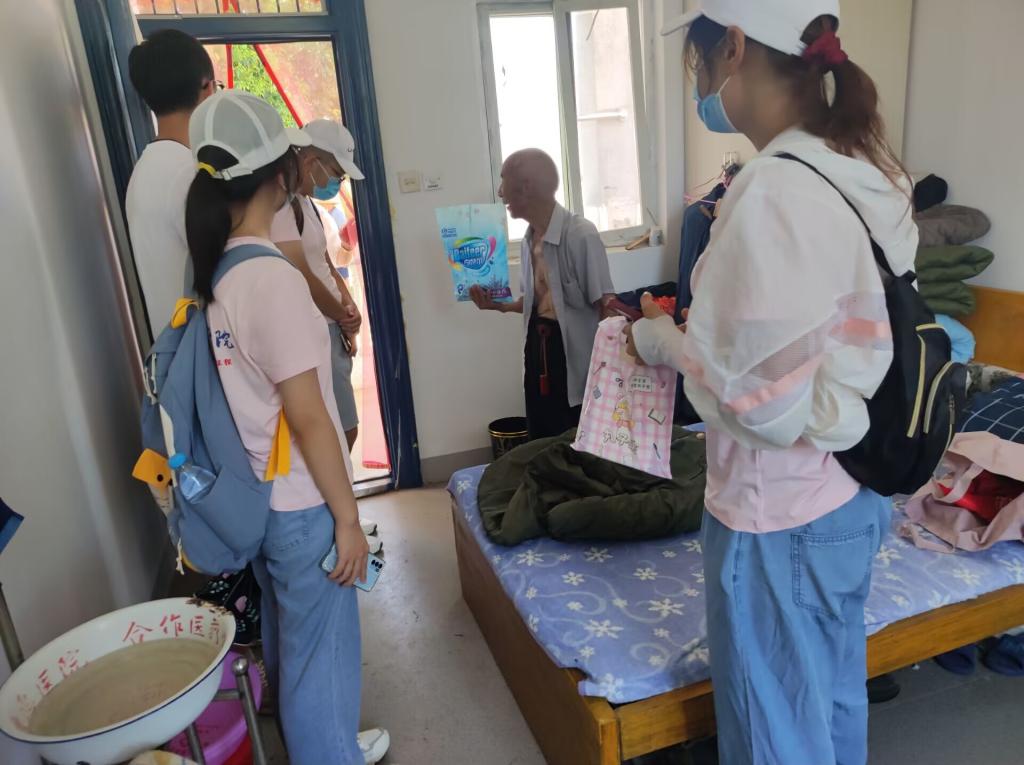 实践当天,团队成员在固镇县仲兴镇党政办公室主任梁恒的协助下,先后参观了仲兴镇养老院和津浦铁路固镇站旧址。在仲兴镇养老院,副院长陈家乐带领团队成员一一参观了老人们的娱乐区域、食堂、住宿等地,成员们同老人们亲近交流,问寒问暖,积极了解他们当前的生活状况和精神面貌。陈家乐还详细介绍了乡村振兴战略带给人民尤其是老人的种种便利政策,正是党的好政策才使得院内34位孤寡老人“老有所依、老有所为、老有所养”,大家切身感受到当地政府对老人生活的深切关怀与巨大付出,更加深刻了解了中国特色社会主义制度的优越性,并愈发坚定投身其中的信念。