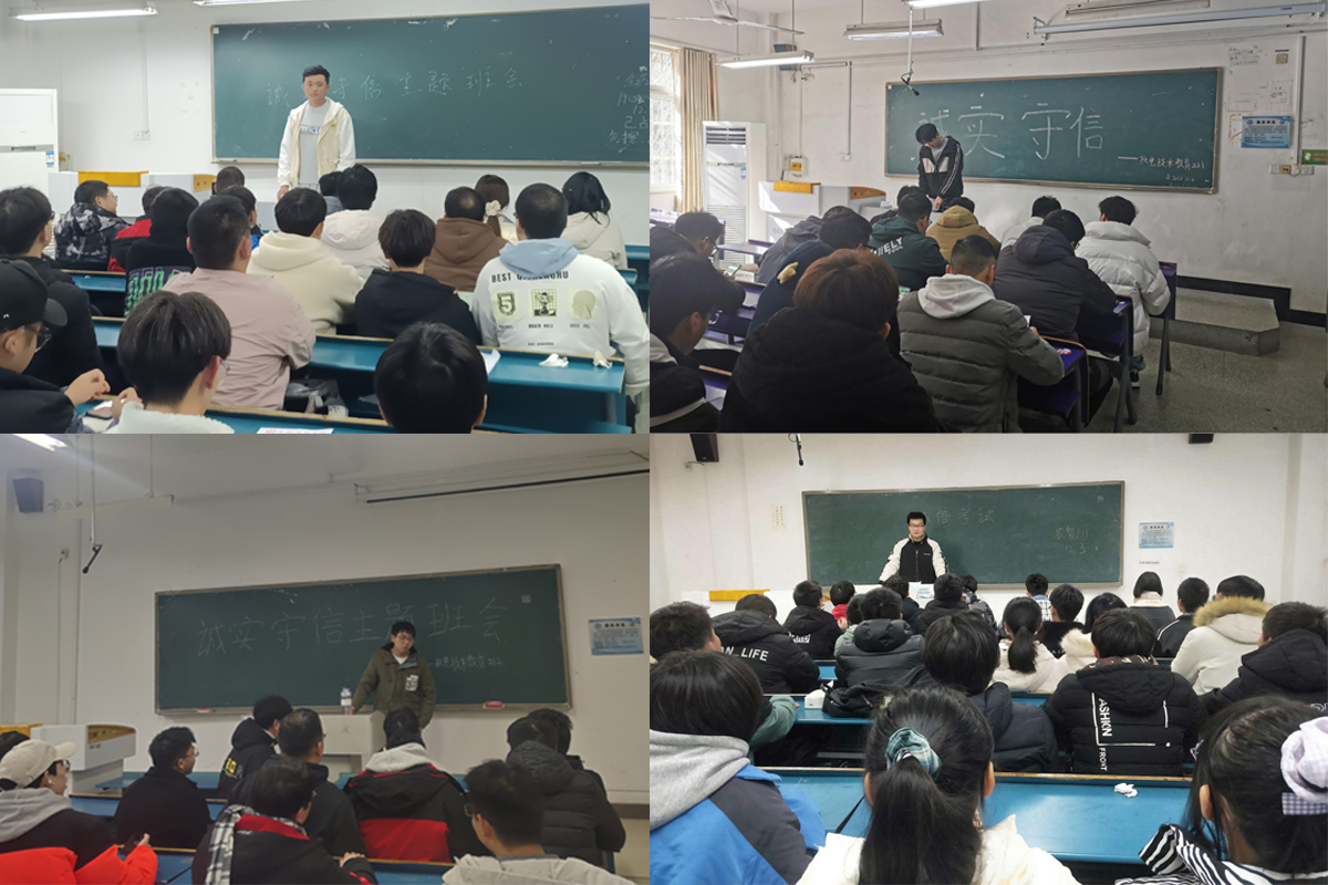会上,邱杰围绕诚信考试进行了主题教育,布置相关工作任务,重点强调了诚信的重要性和失信的危害性,指出守信好处多、失信寸步难;要求同学们增强诚信意识,怀着诚实不欺的心并付诸实际行动。邱杰特别提醒,在考试中违纪就是严重的失信行为,要求大家严格遵守考试纪律,杜绝作弊行为。邱杰结合宣讲《开云在线登陆入口_开云(中国)学生违纪处分办法》和2016年以来有关考试违纪的典型案例,对考试违规行为情形和对应处分种类进行了详细说明,并对各班开展诚实守信主题班会教育活动进行了部署。