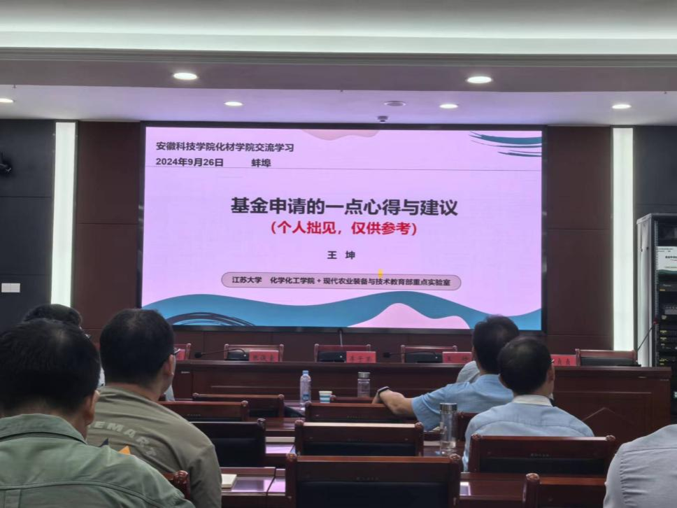 为进一步扩大我院师生学术视野,活跃校园学术氛围,推进2025年国家自然科学基金申报,9月26日下午,化学与材料工程学院邀请江苏省“青蓝工程”中青年学术带头人王坤教授、江苏科技大学环境与化学工程学院副院长张俊豪教授及江苏大学化学化工学院副院长朱国兴教授为学院师生做学术报告和国家自然科学基金申报指导讲座。会议由副院长惠贞贞副教授主持,学院青年教师和部分本科生参加本次讲座。