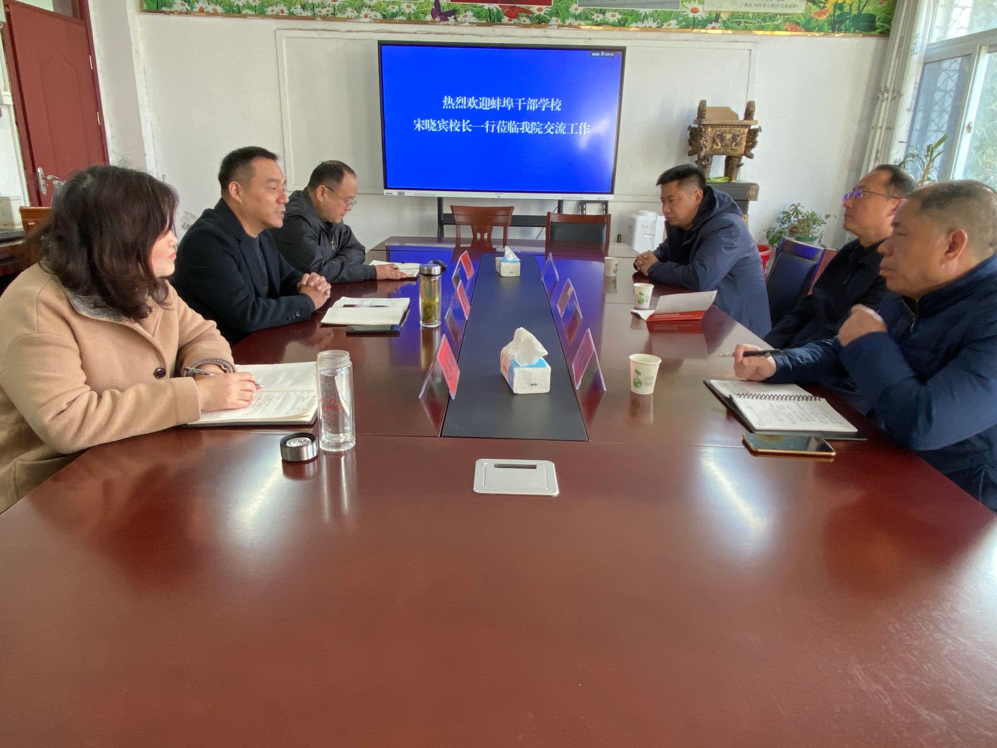 宋晓宾忠心祝贺我校取得的发展成就,他介绍了近年来蚌埠干部学校在干部培训、科研资政、农业推广等方面的思路与做法,期待今后在学历继续教育和非学历培训等工作能和继续教育学院进一步深化合作、加强学习互鉴。