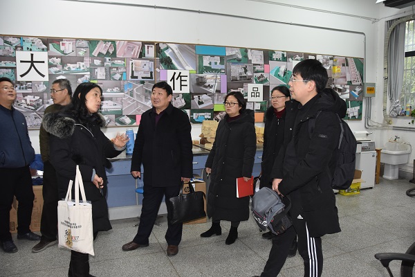 会后,建筑学院一行参观了规划设计成果展厅、导师工作室、专业教室、模型实验室和图档室等。