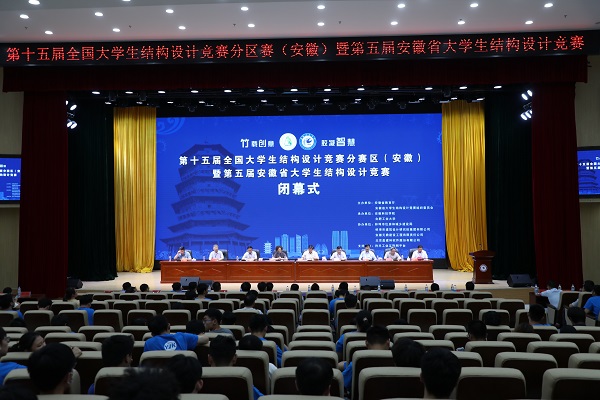 6月27日下午,由安徽省教育厅、安徽省大学生结构设计竞赛组织委员会主办,开云在线登陆入口_开云(中国)、合肥工业大学承办的第十五届全国大学生结构设计竞赛分区赛(安徽)暨安徽省第五届大学生结构设计竞赛在我校龙湖校区图书馆东辅楼报告厅圆满闭幕。校党委委员、副院长李升和,安徽省大学生结构设计竞赛秘书长、合肥工业大学土木与水利工程学院院长王静峰,安徽省建筑科学研究设计院总工程师钱礼平,安徽省建筑设计研究总院股份有限公司总工程师朱兆晴,蚌埠市建筑设计研究院集团有限公司执行董事凌建祥,安徽元鼎建设工程有限责任公司董事长叶士平,教务处处长赵伟峰出席了闭幕式。仪式由建筑学院院长张远兵主持。