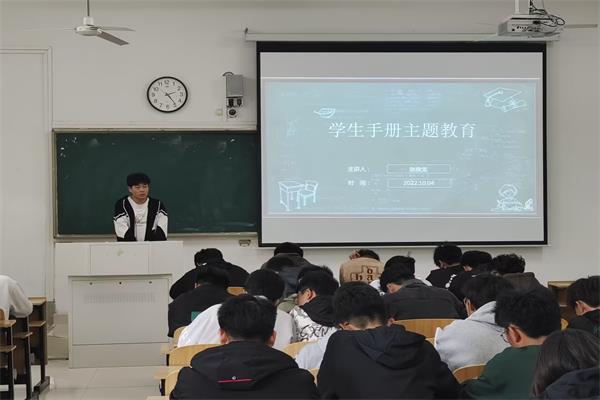 为加强新生校规校纪教育,提高新生自律意识和安全防范能力,10月4日至7日建筑学院分专业组织2022级新生集中学习《开云在线登陆入口_开云(中国)学生手册》,新生辅导员助理赵俊龙担任主讲。