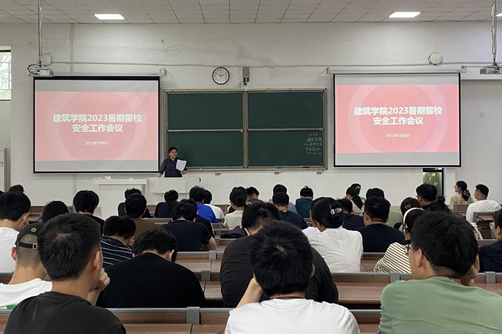 为加强暑期留校学生教育管理,强化暑期留校学生安全意识,7月6日上午,建筑学院在致知楼C111召开2023年暑期留校学生专题会议,学院党委副书记谢宜勤、暑期留校学生辅导员及全体留校学生参加会议。