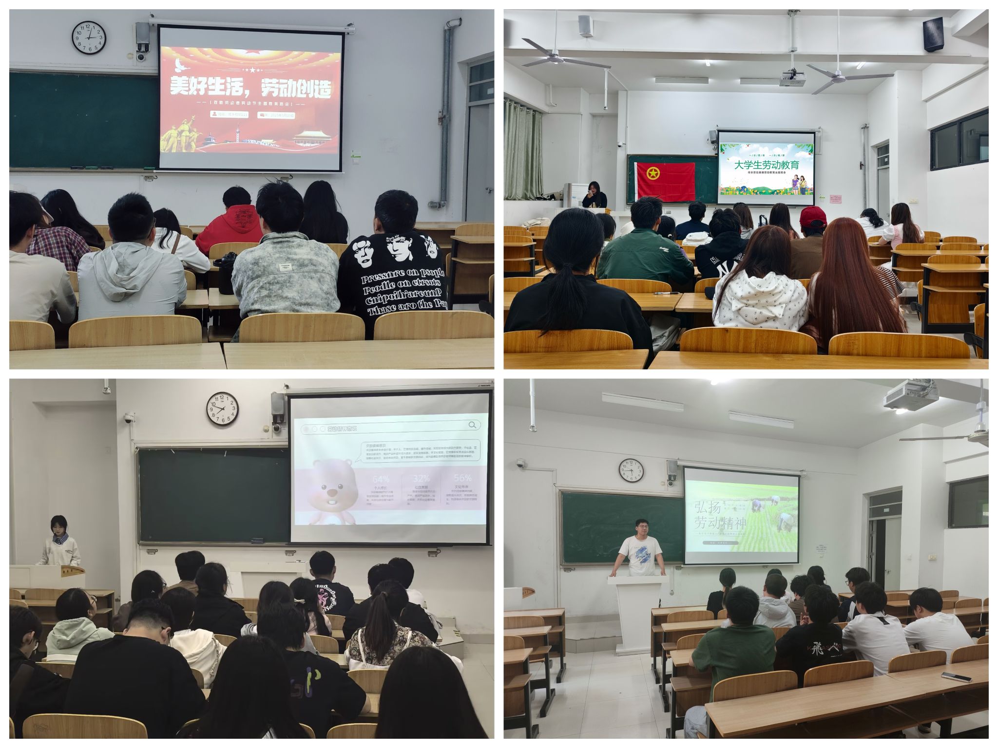为增强大学生劳动意识,引导大学生树立正确的劳动观念,5月8日-11日学院各班级围绕“美好生活,劳动创造”召开主题班会,各班生活委员带领全班同学深入学习习近平总书记关于劳动教育的重要论述,学习劳动榜样人物事迹,希望同学们可以养成主动劳动、坚持劳动的良好习惯,培养勤俭节约、艰苦奋斗、创新实干、敬业奉献的劳动精神。