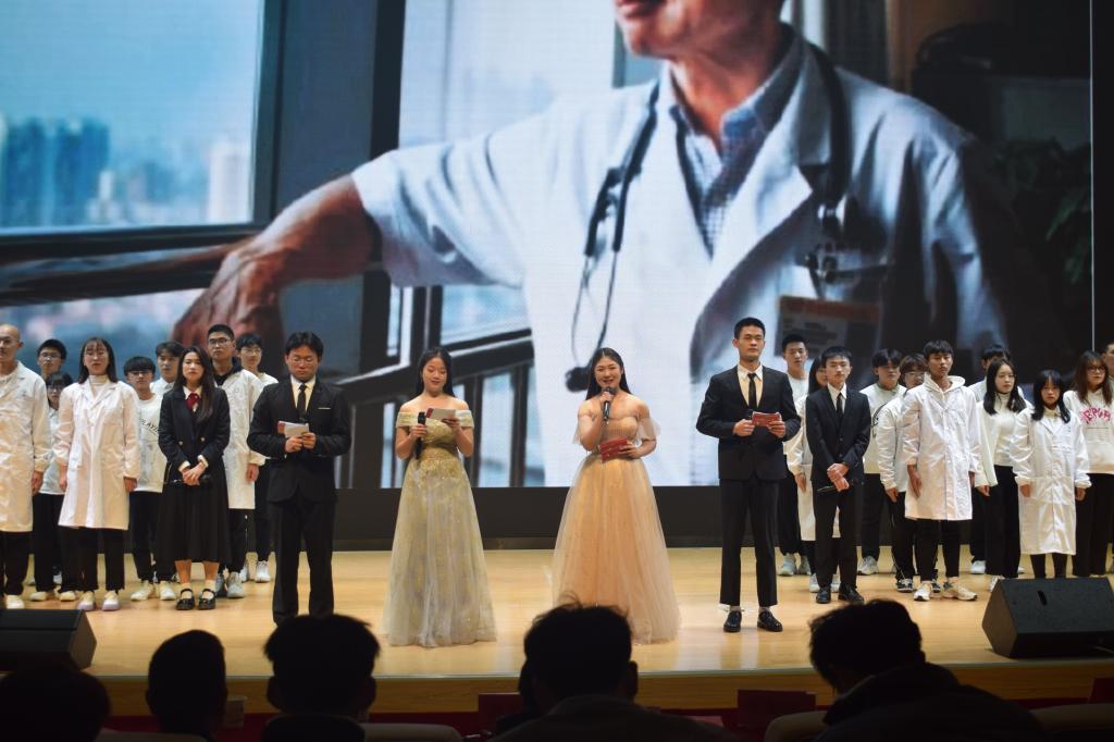 本场晚会以“改革换新学四史,复兴强国踏征程”为主题,分为三个篇章。第一个篇章“红日千秋照,乾坤万代红”,器乐合奏《开往春天的地铁》让人沉醉,歌曲《奔跑》、《最美的太阳》让我们感受到了满满的活力。第二个篇章“红旗擎天地,妙手绣乾坤”,舞蹈《天上飞》和说唱《talk too much》都充满着动感的韵律,带动了全场的氛围,观众拍手叫好。最后一个篇章“花沐春雨艳,福依党恩生”以激情的朗诵,师生共同演绎的《我和我的祖国》等,让同学们感受到作为中国人的荣光与自豪,相信在党的领导下,明天会更好,国家会更强盛!