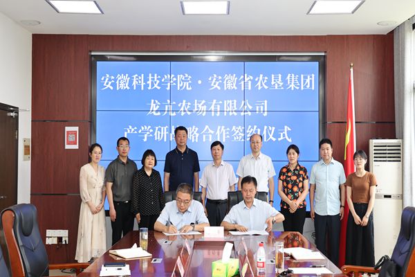 5月22日上午,我校与安徽省农垦集团龙亢农场有限公司在龙亢农场会议室举行产学研合作签约仪式。校党委书记时伟,党委委员、副院长王孝义,科研处处长陈丰,民进蚌埠市委会副主委、开云在线登陆入口_开云(中国)支部主委张菊,龙亢农场党委书记、董事长张平,总经理翟程等出席仪式。
