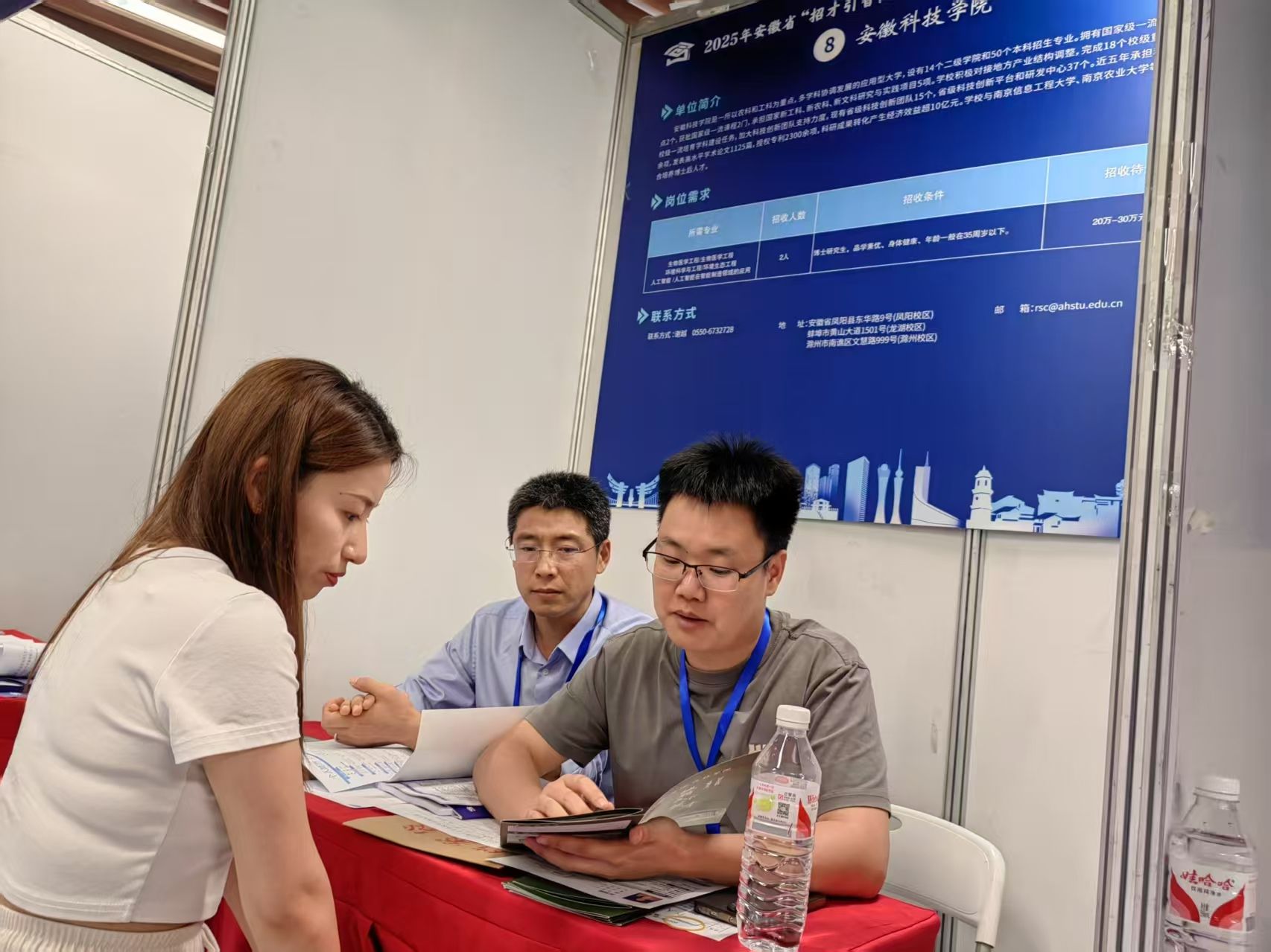招聘会现场气氛热烈,我校展位前人头攒动,吸引了众多求职者驻足咨询。国海和张文武老师向应聘者详细介绍我校优越的办学条件、强劲的发展势头、富有竞争力的引才政策;耐心解答应聘者关于学科方向、科研团队、工作环境、职业发展等方面的具体问题,全面展示了我校爱才、惜才、重才的良好氛围。不少优秀人才表达了加盟开云在线登陆入口_开云(中国)的强烈意愿,提交了个人简历,部分人员初步达成来校考察意向。