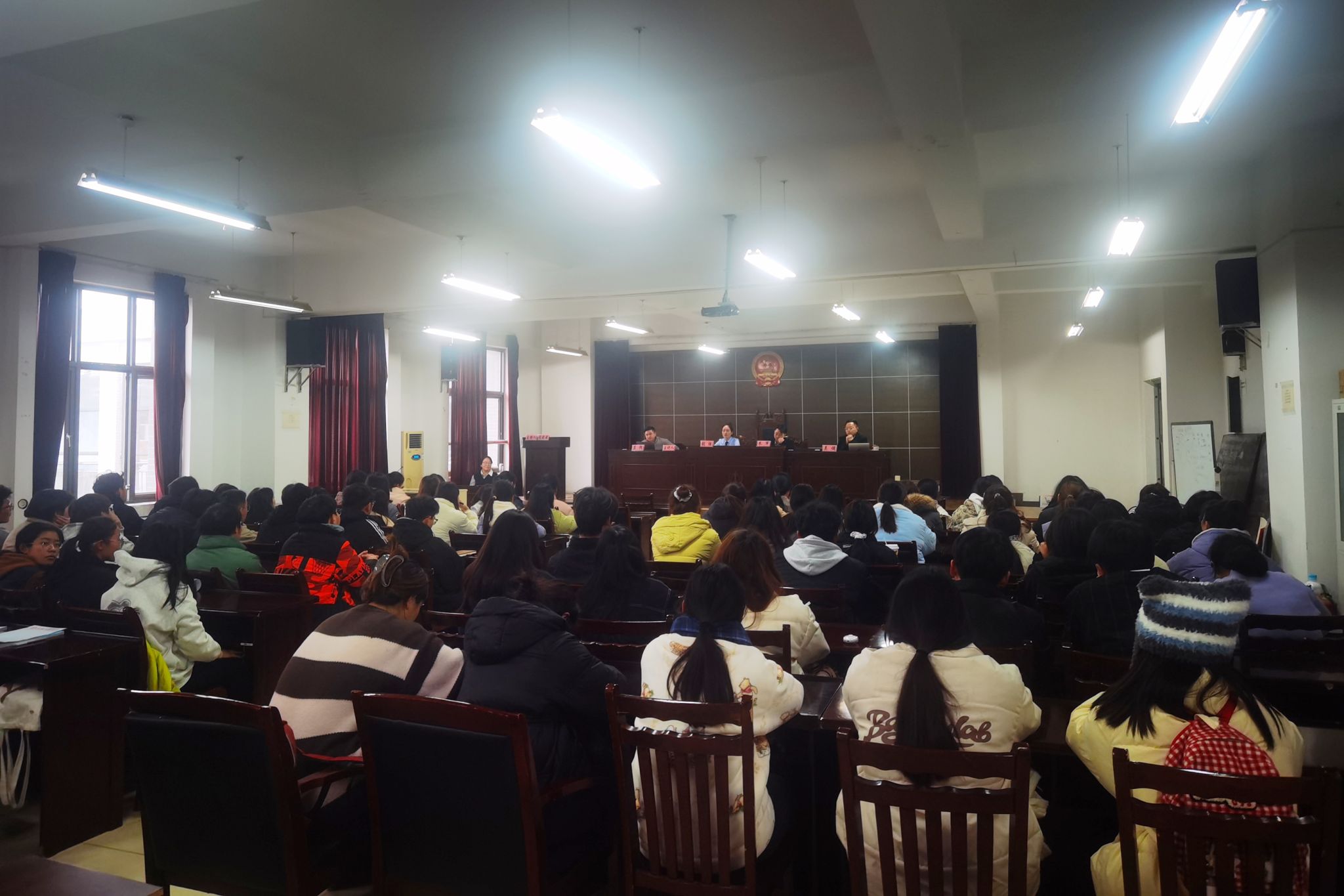 为加深法学2024级新生对法学专业的了解与认识,12月4日,人文学院在模拟法庭开展“我与校友面对面”活动, 2016届法学专业4位校友应邀参加,他们分别是浙江广政律师事务所合伙律师吕朗,浙江泽大律师事务所专职律师吴调,凤阳县劳动人事争议仲裁院仲裁员张陆,安徽扶光律师事务所主任朱军。活动由人文学院法学系主任张晓云主持。