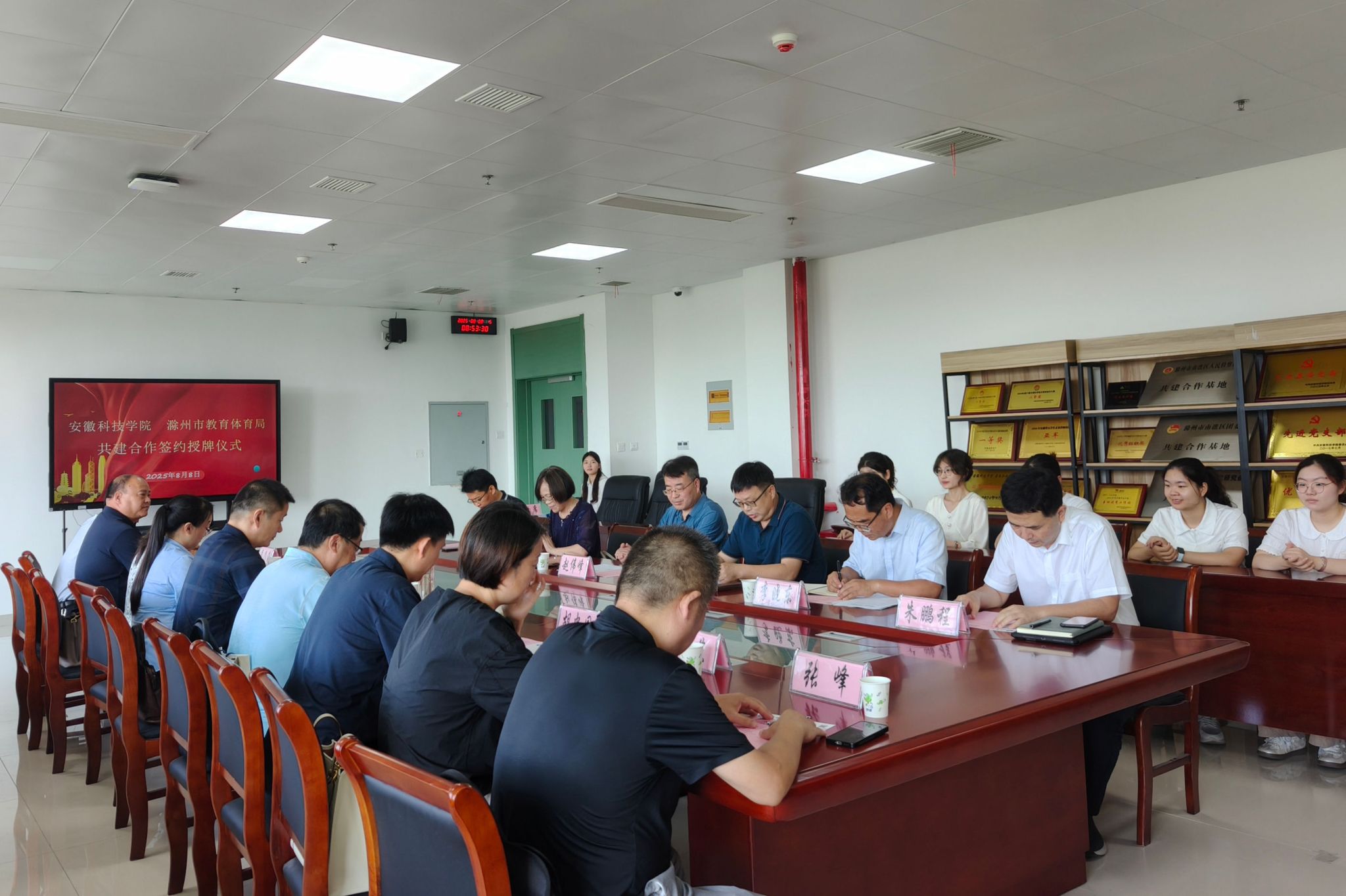 8月8日上午,校党委委员、副院长赵伟峰出席开云在线登陆入口_开云(中国)与滁州市教育体育局共建合作签约授牌仪式。滁州市委教体工委委员、市教体局副局长李志及教体局相关科室负责人,滁州市区六所中学负责人;教务处、人文学院、外国语学院有关人员出席仪式。仪式由教务处副处长(主持工作)舒英杰主持。