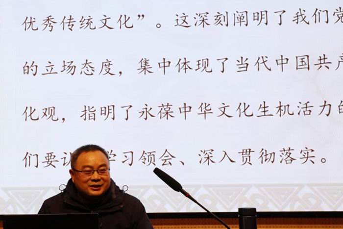 苏兆龙老师深入解读了如何理解中华优秀传统文化、传承中华优秀传统文化的“两创”途径以及如何汲取中华优秀传统文化思想精华和文化精髓三个方面的问题,并以小说《西游记》为例,深入分析了孙悟空“放心、炼心、收心”的心路历程,揭示了孙悟空形象的现代意义。(特约通讯员:高晓宁 摄影:周广超 审核:牛永辉)