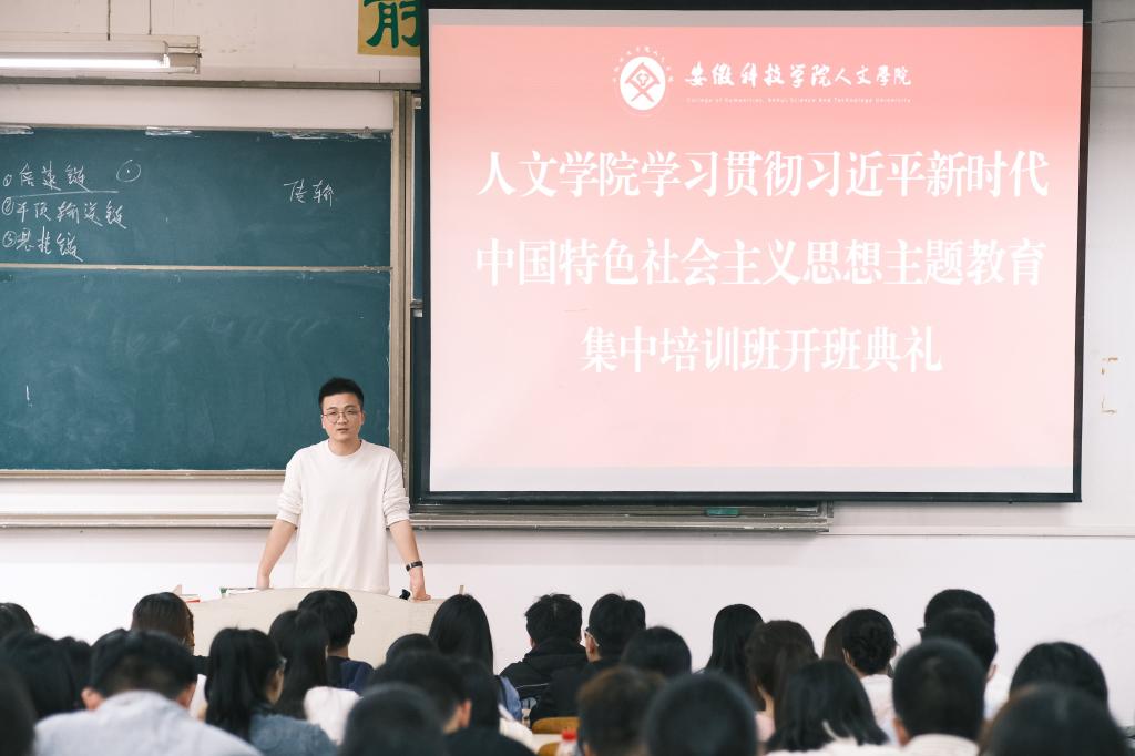 为深入开展学习贯彻习近平新时代中国特色社会主义思想主题教育,学习宣传贯彻党的二十大精神,进一步加强对入党积极分子、发展对象、预备党员的培养教育,5月24日下午,人文学院“学习贯彻习近平新时代中国特色社会主义思想主题教育集中培训班”开班典礼在求知楼A104教室举行。学院入党积极分子、发展对象、预备党员等百余人参加,学院党委书记杜士凤出席。会议由辅导员方明旺主持。