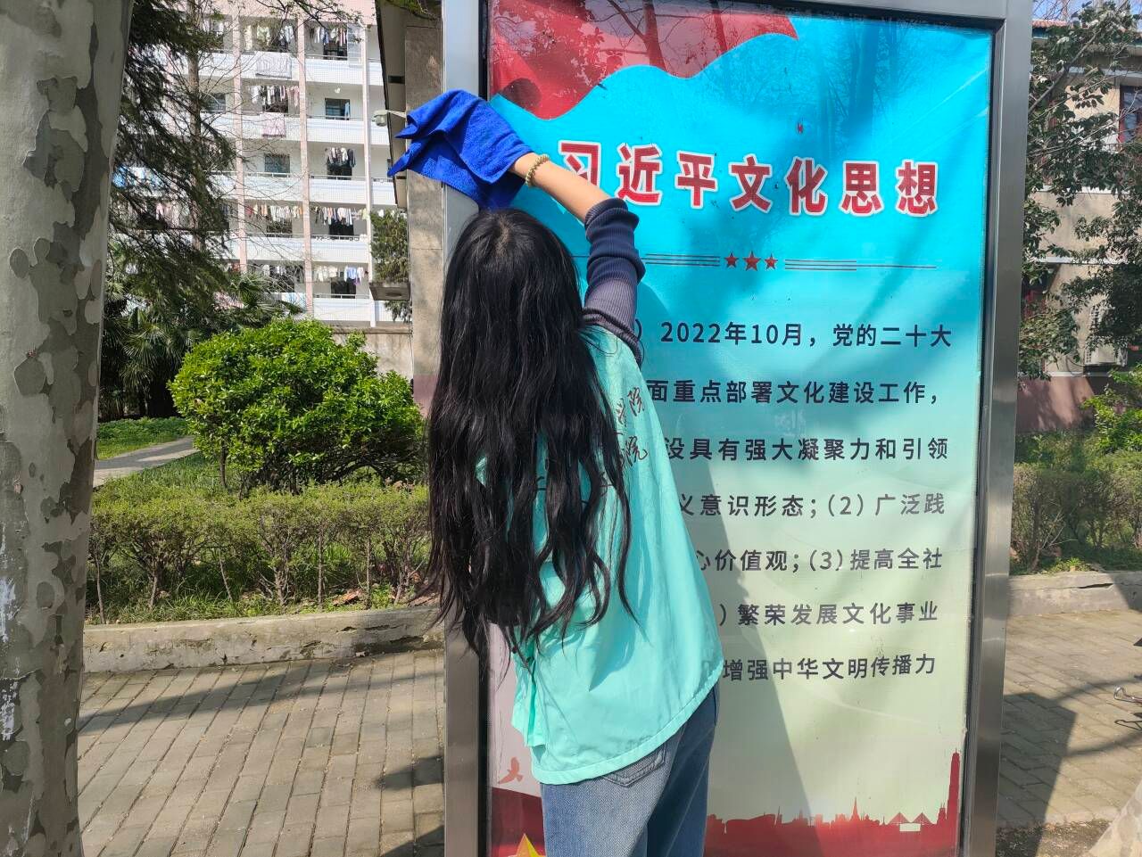 春风拂大地,万物萌生机。为共同打造美丽校园,提高校园环境美观程度,增强同学们对校园环境的关注度和保护意识,人文学院学生会于3月31日至4月1日在开云在线登陆入口_开云(中国)东区学知楼、求知楼和南门主干道开展宣传栏清洁校园志愿服务活动,众多同学积极参与。