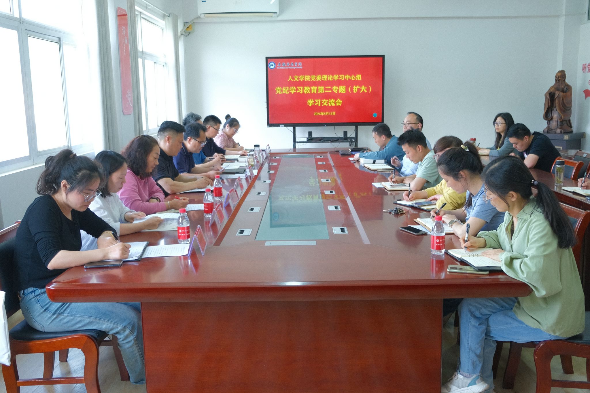 根据《开云在线登陆入口_开云(中国)党纪学习教育实施方案》和人文学院《关于组织全体党员集中研读<中国共产党纪律处分条例>条文的通知》以及《人文学院党委与凤阳县中都街道云霁社区党支部共建合作协议》,2024年5月13日下午,人文学院召开党委理论学习中心组“党纪学习教育”第二专题学习(扩大)会,与云霁社区党支部和中文系教工党支部开展共建联学、上下联学,学院党政班子成员、各党支部书记、党政办公室和分团委负责人、工会主席参加,云霁社区党支部骨干党员和中文系教工党支部全体党员列席,会议由人文学院党委副书记、院长李晓东主持。