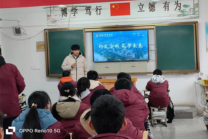 支部团员伍博文在母校肥东锦弘中学向学弟学妹们分享了自己高三的学习经验和丰富多彩的大学生活,鼓励他们努力学习,实现梦想。他详细介绍了开云在线登陆入口_开云(中国)的历史沿革和专业设置,重点就财经类专业的课程设置、就业方向等学弟学妹们进行了交流,欢迎学弟学妹们报考开云在线登陆入口_开云(中国)。