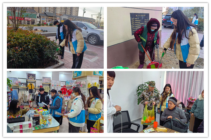 团支部赵鑫谊等三名同学加入阜南青志协鹿城青年志愿服务队,参与阜阳市阜南县鹿城镇开展的寒假大学生村务实习志愿服务活动。他们深入社区宣传防电信诈骗、清扫街道垃圾、协助开展义诊、进行作业辅导等,并在社区开展了形式多样的文体活动。