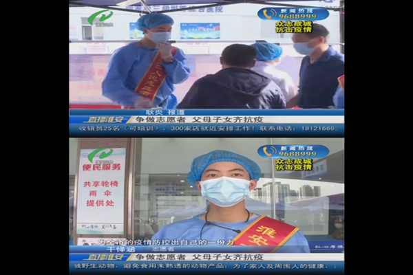 淮安电视台对干怿涵等志愿者进行采访报道