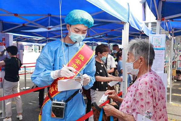 干怿涵帮助老人填写流调表