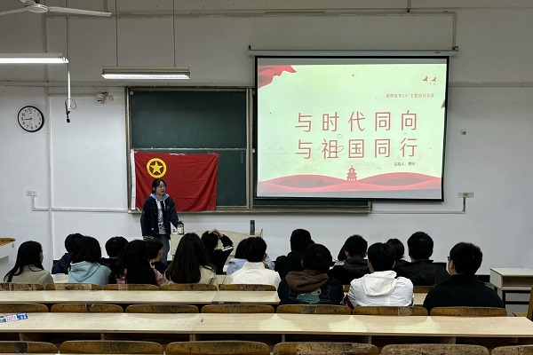 10月23日,动医244班团支部副书记、班长王振康在求A103开展主题团日活动。他给同学们介绍了中国共产党的三个伟大历史贡献,促进同学们对国家战略的认识,提升了自身思想、能力方面的成长。