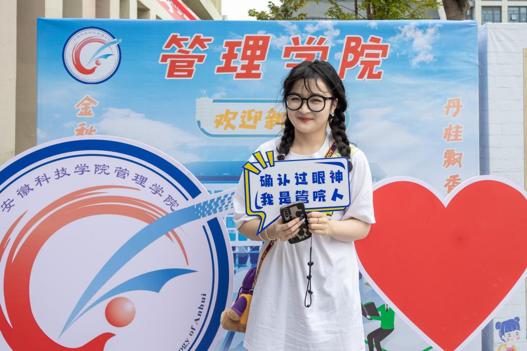 在管理学院入学报到信息核验点,竖立着一块色彩斑斓的管理学院留影背景墙——“我与院徽合张影”。学院特别为每一位报到的新生拍下开学的第一张照片。随着一声“咔嚓”轻响,美丽的安科校园,未来将活跃着更多的年轻身影,他们笑得灿烂,朝气蓬勃。