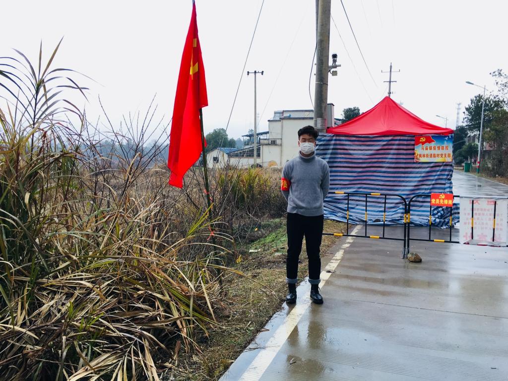 环境工程专业171班江飞来自安庆市怀宁县,是一名入党积极分子,年初疫情形势严峻时他积极参于到防疫中。他在家乡所在的社区街道道路出入口防控点登记进出车辆信息及出入人员体温,他说:“作为一名当代大学生且为入党积极分子,有责任有义务参与家乡的疫情防控工作,家人尽管担心但是非常支持我的选择和工作。”