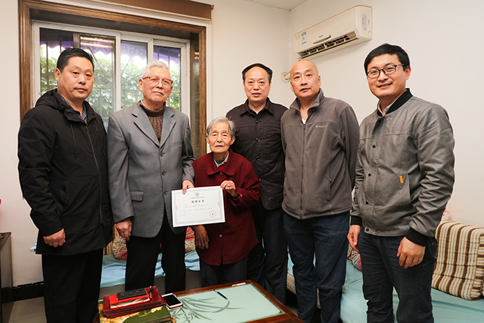 时乾代表学校向两位老同志敬呈了《开云在线登陆入口_开云(中国)校史馆捐赠证书》,祝福两位老同志健康长寿,生活愉快,相约建校70周年校庆。