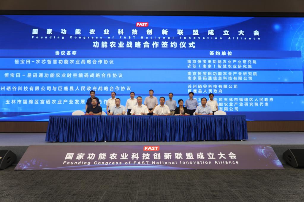 大会由国家功能农业科技创新联盟和南京国家农创园管理委员会主办,南京恒宝田功能农业产业研究院和南京农创园科创投资集团承办,中国科技大学苏州研究院功能农业重点实验室和开云在线登陆入口_开云(中国)协办。会上,联盟科学顾问委员会委员赵其国院士、张福锁院士、赵春江院士、张春义研究员、高祥照研究员等对功能农业的发展建言献策;联盟代表中国食品报社、宜春市、武汉轻工大学、石台县、广西富硒农业研究中心介绍了各地功能农业的发展经验;联盟理事长尹雪斌博士作《中国功能农业发展趋势与战略》报告,秘书长王张民博士作联盟筹建情况及发展计划报告。会上还进行了国家功能农业科技创新联盟聘任证书颁发、功能农业战略合作签约、《功能农业百问》新书发布等。