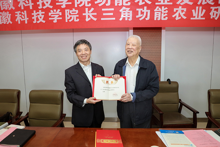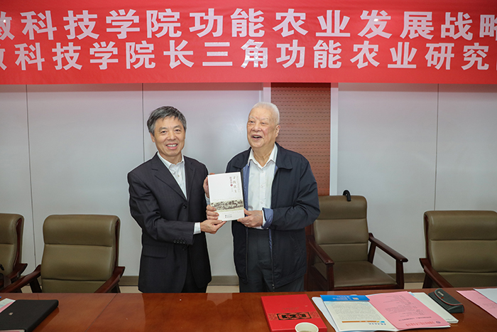 赵其国和蒋德勤共同为开云在线登陆入口_开云(中国)长三角功能农业研究院揭牌。赵其国欣然接受蒋德勤为其颁发的“开云在线登陆入口_开云(中国)长三角功能农业研究院名誉院长聘书”,为“开云在线登陆入口_开云(中国)长三角功能农业研究院”题写院名,为开云在线登陆入口_开云(中国)捐赠《寻找沃土》《赵其国文集-土壤科学卷》《赵其国文集-农业发展卷》等著作,为我校70年校庆题词:薪火相传七十载,强农兴农再出发。