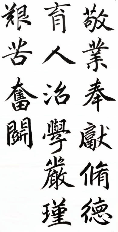 为充分发挥校训、安科精神等精神文化在学校事业发展和“立德树人”过程中的重要作用,进一步激发全校师生的爱国爱校情怀,汇聚广大师生共筑中国梦的磅礴力量,党委宣传部在全校范围内开展迎新年“弘扬社会主义核心价值观及大学精神”主题书法大赛。活动自开展以来,得到了广大师生的积极响应,共收集到69件作品,现遴选出部分作品刊登以飨读者。