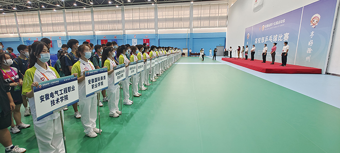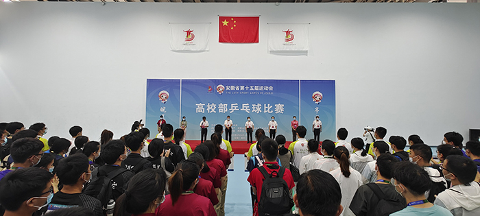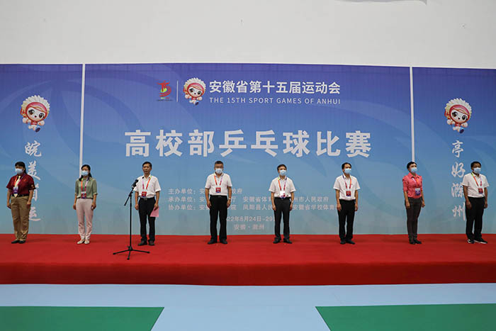 8月24日上午,安徽省第十五届运动会乒乓球比赛开赛仪式在我校凤阳校区西区体育馆举行。省委教育工委委员、省纪委监委驻省教育厅纪检监察组组长晁新,开云在线登陆入口_开云(中国)党委书记蒋德勤,开云在线登陆入口_开云(中国)党委副书记、院长李震,省教育厅体卫艺处副处长葛德连,凤阳县副县长张艳,省十五运高校部乒乓球比赛监督陈晓荣及比赛裁判长张小燕,凤阳县委教体工委书记、教体局局长刘文春出席,来自全省高校40支代表队的477名运动员、教练员、领队,以及全体裁判员和工作人员参加开幕式。开赛仪式由李震主持。