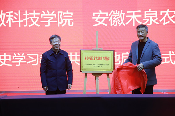 为深入贯彻落实习近平总书记在中国共产党第二十次全国代表大会上的重要讲话精神,巩固拓展党史学习教育成果,创新新时代马克思主义理论传播主阵地,10月21日下午,我校与安徽禾泉小镇举行党史学习教育共建基地启动仪式。我校党委书记蒋德勤;马克思主义学院党总支书记杨仕勇,党总支副书记、院长张德化,副院长张栋及禾泉小镇党史学习教育馆项目组成员;禾泉小镇董事长蒋保安、副总经理耿珂和总经理助理刘效辉同志参加了启动仪式。