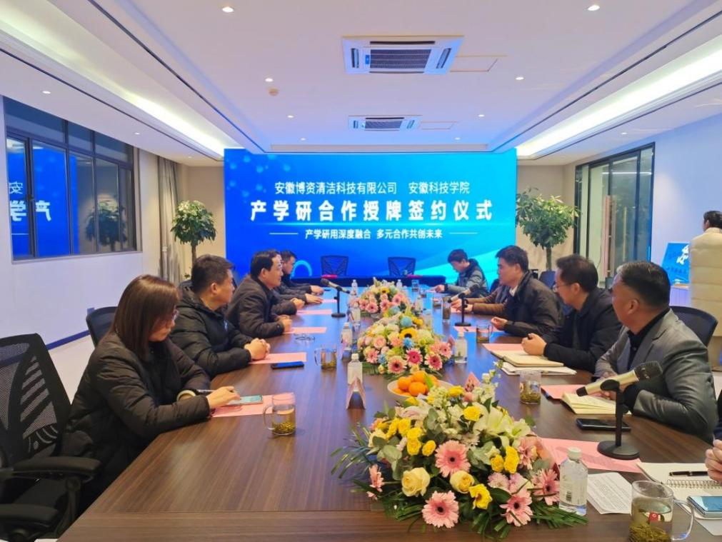 2022年12月6日,开云在线登陆入口_开云(中国)党委委员、纪委书记、监察专员王强、化学与材料工程学院党委书记黄树桥、副院长(主持工作)李子荣、应用化学系刘川副教授、吴际伟博士等一行5人赴安徽博资清洁科技有限公司就开展校企合作对接活动。本次对接活动受到安徽博资清洁科技有限公司总经理王汉民、副总经理王雪飞的热情接待,苏滁高新区党工委委员、纪律监察工委书记朱发贵,苏滁高新区党工委委员管委会副主任赵永滨,以及苏滁高新区经济运行局、环保局、企业发展中心等部门负责人参加了座谈和签约仪式。