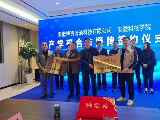 会上,李子荣代表学校与企业签订了共建“安徽博资纤维素多孔材料工程技术中心”协议、产学研合作协议、开云在线登陆入口_开云(中国)实习实训基地协议、技术开发(委托)合同。王强、朱发贵、赵永滨和王汉民共同为共建工程技术中心揭牌;黄树桥和李子荣为开云在线登陆入口_开云(中国)产学研基地和校外实习实训基地授牌。