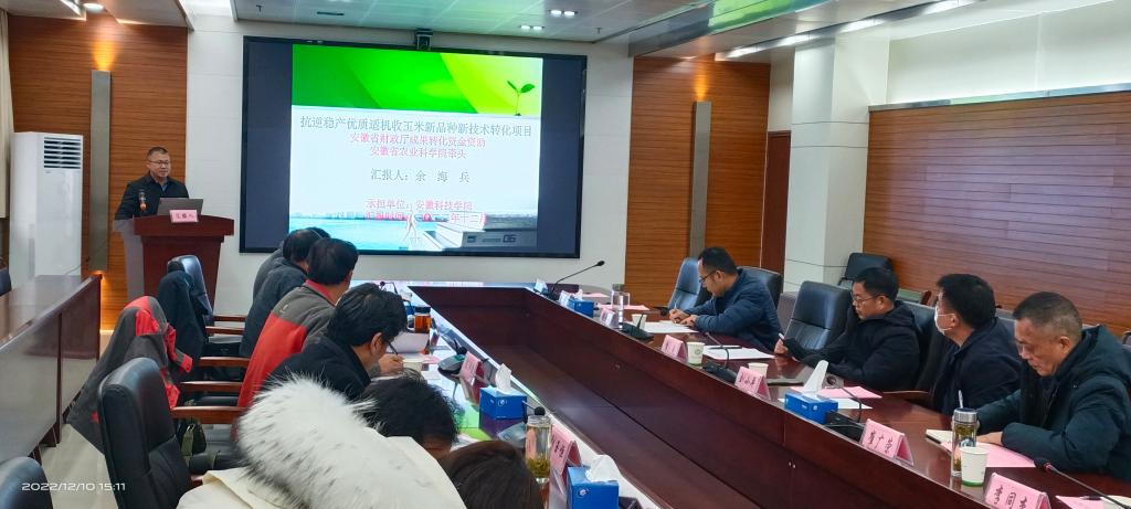 12月10日,由安徽省农业科学院牵头,我校承担的“抗逆稳产优质适机收玉米新品种新技术转化项目”历经一年,在安徽省农业科学院创新大楼二楼会议室进行结题汇报。省财政厅农业农村处主任科员梁晓天,安徽省农业科学院科研处处长李成、计财处处长刘小平,开云在线登陆入口_开云(中国)农学院院长崔广荣、科研处副处长李同杰,部分项目组成员出席会议。项目验收专家组由安徽省农业科学院研究员陈洪俭、安徽省农技推广总站副站长康子领、安徽省种子管理站研究员刘玉恒、合肥丰乐种业股份有限公司正高级农艺师张二朋、众华会计师事务所商宜洲等成员组成。会议伊始李成致辞,专家组观看了课题组精心准备的视频,余海兵教授代表项目组从课题研究背景、研究目标、研究内容、研究方法、研究成果等方面做了全面细致的汇报。